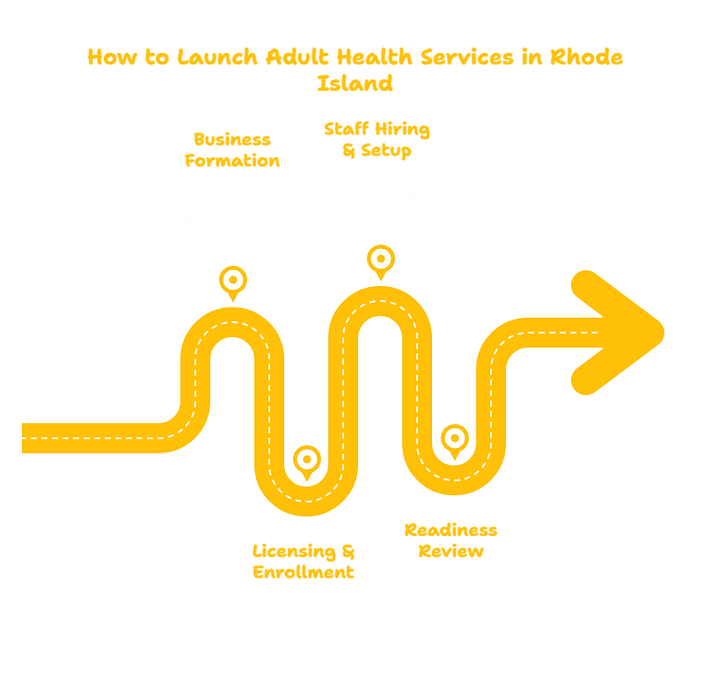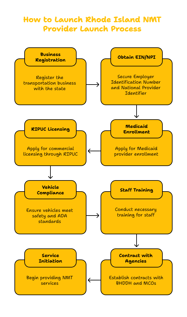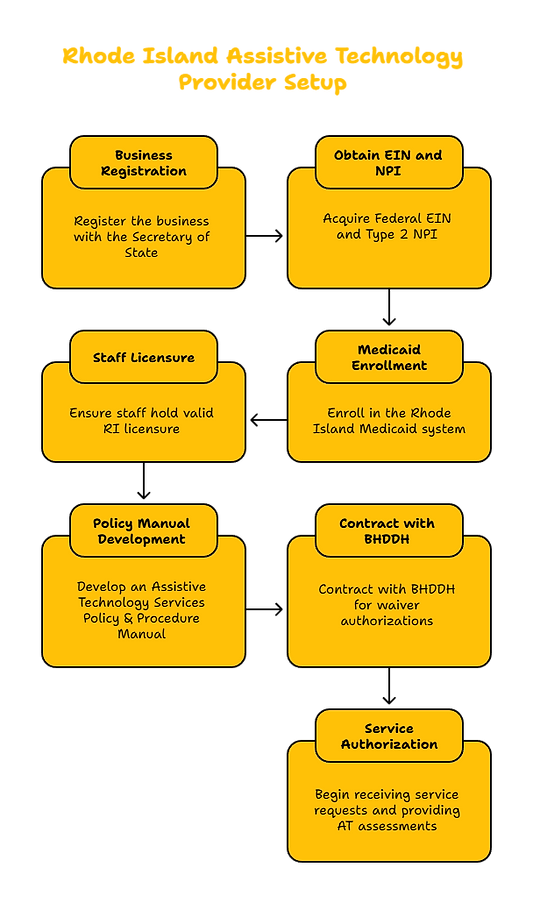 Business registration, RIDOH licensing, and Medicaid enrollment